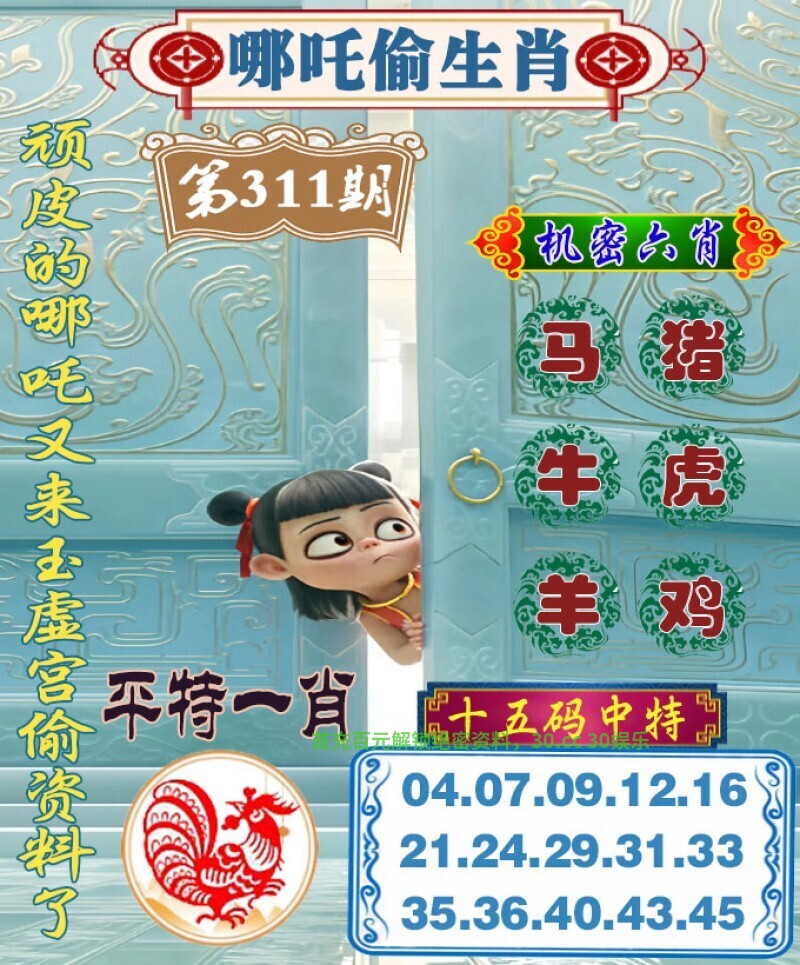 | 311期 | 七肖★猴蛇鸡马猪鼠虎 | 开:蛇37准 |