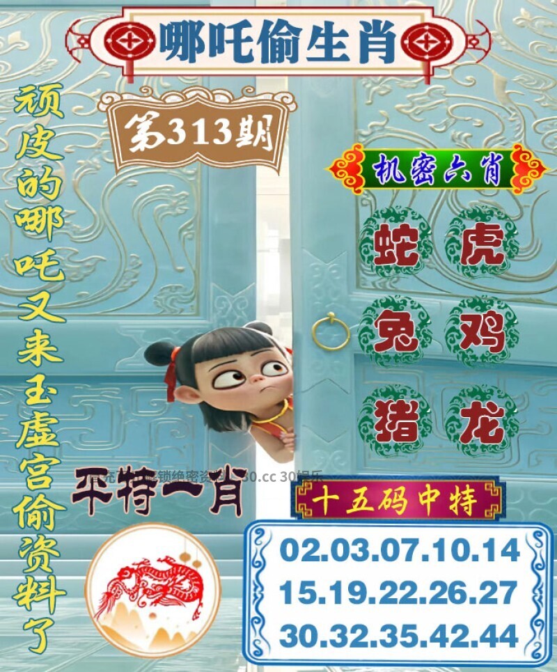 | 313期 | 七肖★龙兔鸡马狗虎蛇 | 开:龙38准 |